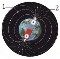 Планета Земля обладает собственным магнетизмом — ее окружает невидимое поле магнитных сил, которого мы не ощущаем, однако оно действует на материалы, содержащие железо или некоторые другие металлы. Обнаружить магнитное поле можно с помощью компаса. Стрелка компаса — это длинный тонкий магнит. Взаимодействуя с земным магнетизмом, она поворачивается и указывает на север и на юг.